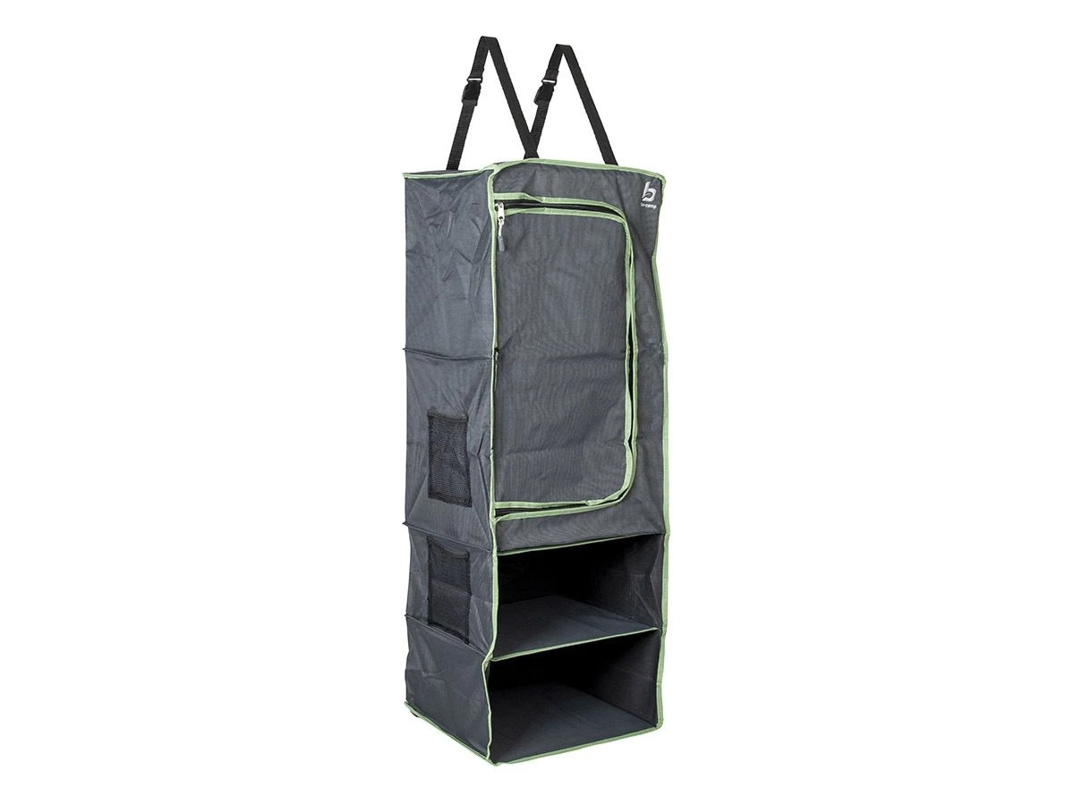 De Bo-Camp organizer 4-vaks is een handige hangkast voorzien van 1 deur en 2 vakken waar optioneel lades in kunnen. De organizer is te bevestigen met klittenband, een pees, aan de ophangogen of aan de straps. Ideaal om extra opbergruimte te creëren tijdens je vakantie.