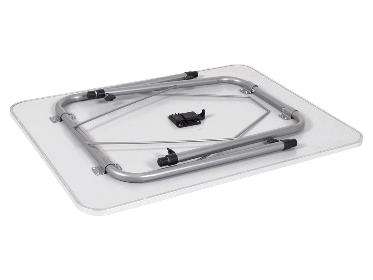 Deze Bo-Camp tafel heeft een afmeting van 80 x 60 cm en is daarmee geschikt voor 1 of 2 personen. De tafel is traploos in hoogte verstelbaar van 50 tot 70 cm. De inklapbare tafelpoten zijn gemaakt van aluminium met daarop een blad van MDF. Het tafelblad is afgewerkt met een aluminium stootrand.