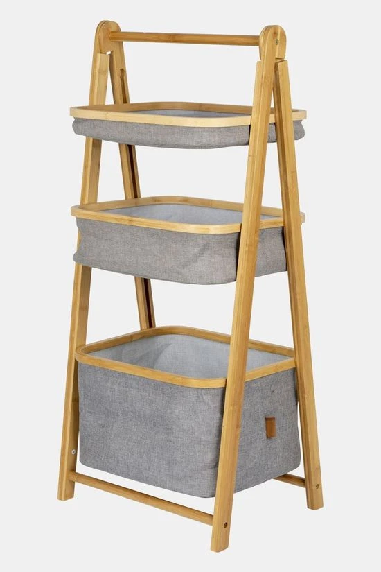 De Bo-Camp Urban Bayswater is een stijlvol kastje met drie mandjes. Het frame is gemaakt van bamboe en de mandjes zijn gemaakt van een luxe polyester stof met een linnen look. De mandjes hebben verschillende hoogtes en zijn licht kantelbaar. Hierdoor zijn spullen eenvoudig op te bergen. Ideaal voor in de tent, maar ook voor thuis, bijvoorbeeld in de badkamer. Na gebruik is deze kast compact inklapbaar tot een hoogte van slechts 6 centimeter.
