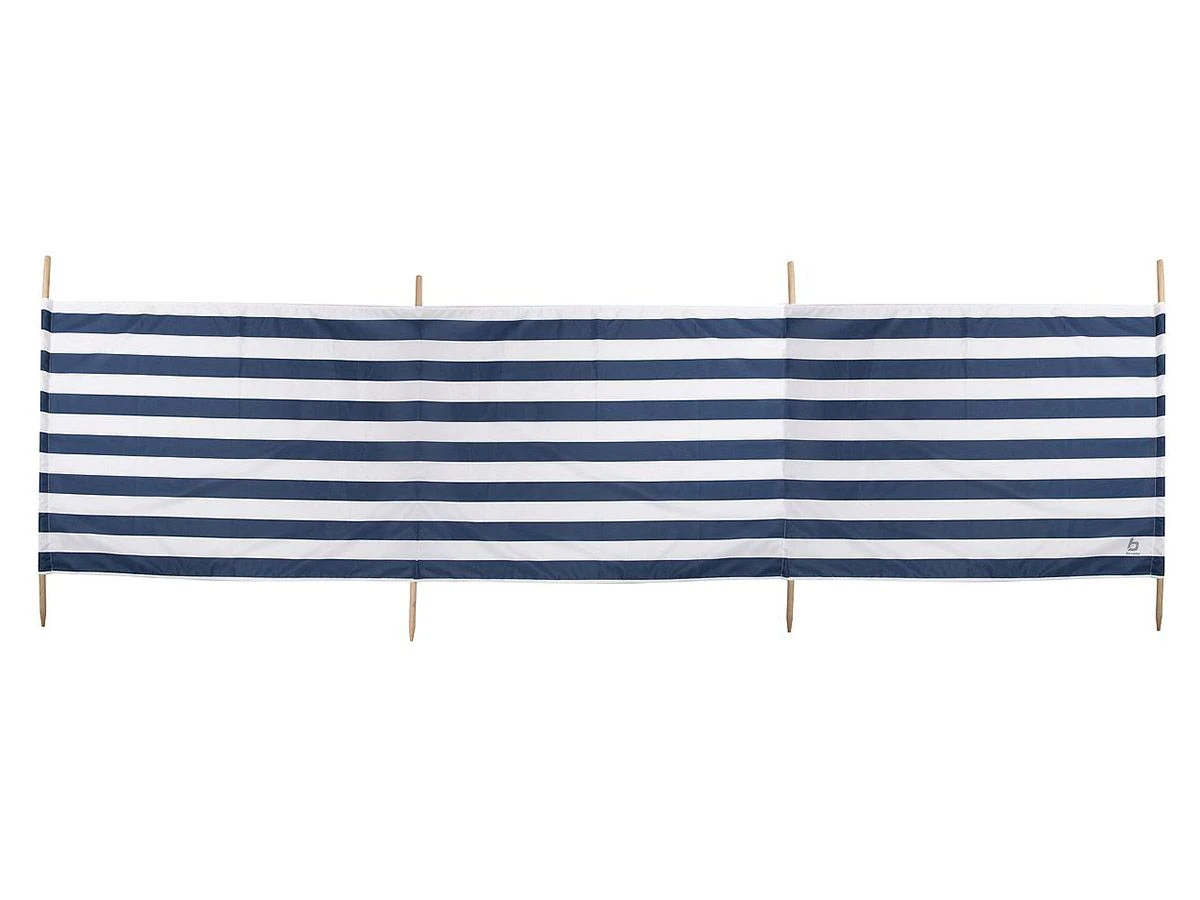 Ideaal tegen de wind, tegen de zon of om uit het zicht te zitten op het strand. Het windscherm is inclusief houten stokken die een hoogte hebben van 117 cm.