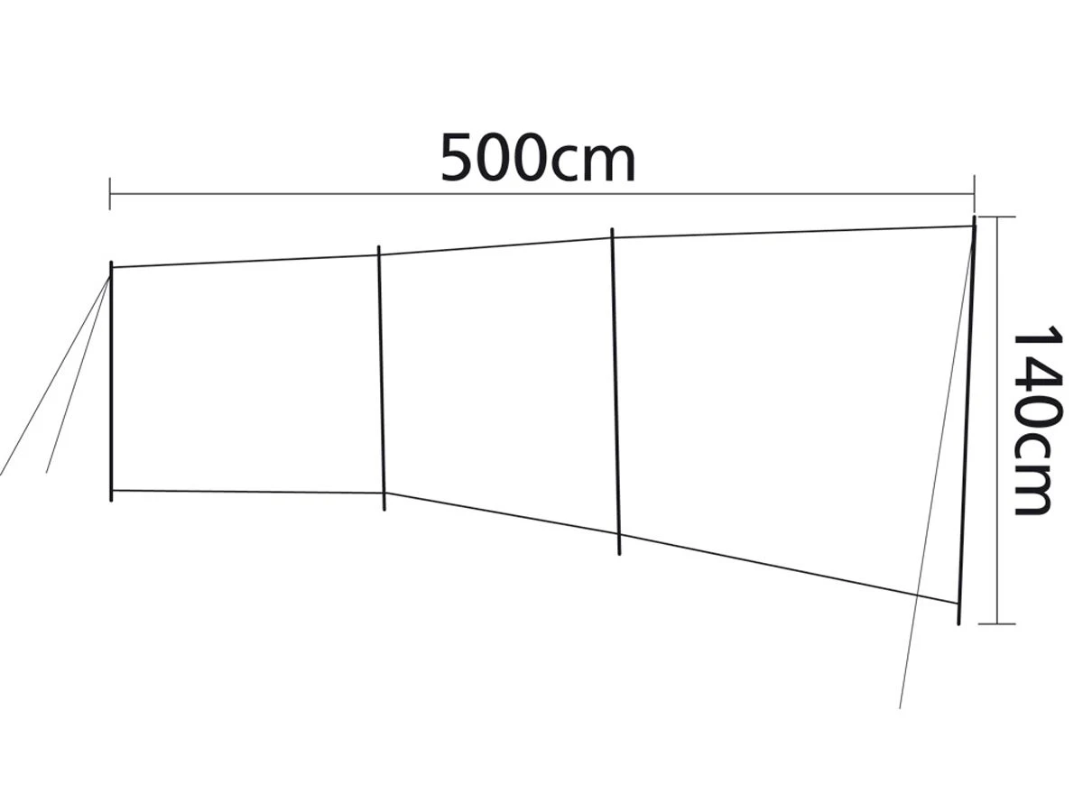 De Bo-Camp 3-vaks windscherm Caira is dankzij de bovenliggers extra stevig. Dit 3-vaks windscherm van polyester wordt geleverd met haringen, scheerlijnen en een draagtas.
