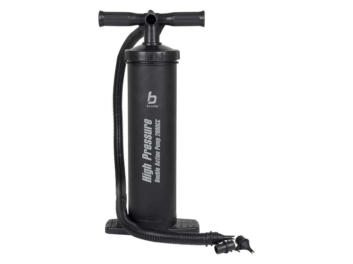 Een dubbelwerkende handpomp. Pompt zowel bij een duwende als een trekkende beweging. Daarnaast biedt deze pomp de mogelijkheid om het gewenste artikel weer vacuüm te trekken. Wordt geleverd inclusief diverse verloopstukken.