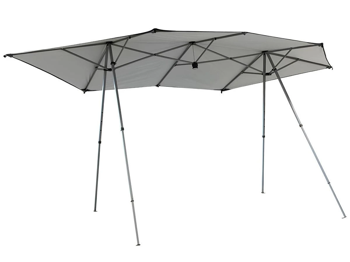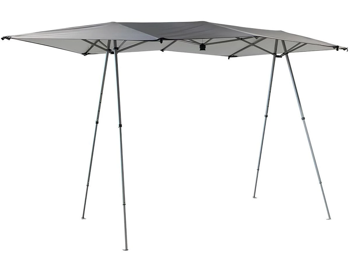 Dankzij het stevige stalen A-frame staat de tent stabiel, en het polyester materiaal met UV-werende en waterdichte coating beschermt tegen zon en lichte regen.
