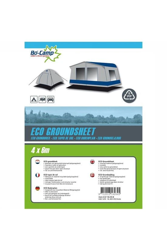 - Het Bo-Camp Gronddoek Eco 4 x 6 Meter is een stevig gronddoek 100 gr/m².