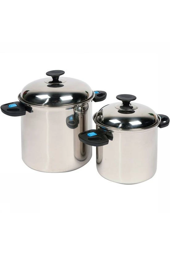 De Bo-Camp Pannenset Elegance Compact 2 2-Delig RVS is een luxe 2-delige RVS pannenset. Iedere pan beschikt over een deksel met hittebestendige knop. Daarnaast heeft iedere pan hittebestendige en wegklapbare handgrepen. Deze handgrepen kunnen na gebruik eenvoudig om worden geklapt zodat de pannen volledig in elkaar stapelbaar en compact op te bergen zijn. Dit bespaart tot 40% ruimte! De pannen zijn smal en hoog en daardoor bij uitstek geschikt voor de beperkte ruimte op kookstellen. De pannen zijn te gebruiken op gas, keramische en elektrische warmtebronnen.