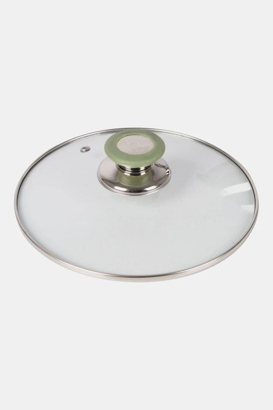 - Iedere pan beschikt over een glazen deksel met hittebestendige knop.