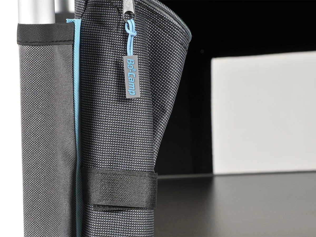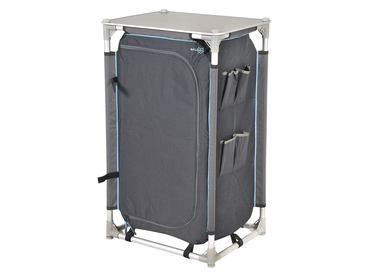 Kun je nog wel wat opbergruimte gebruiken? Maar heb je geen plek meer voor een brede kast? Kies dan voor de Bo-Camp Emerald kast. Voor dit compacte campingkastje is altijd nog wel een plekje te vinden in je (voor)tent. De kast heeft een afmeting van 57 x 47,5 x 95 cm en is voorzien van drie legplanken die je met een ritssluiting kunt afsluiten. De achterzijde is voorzien van mesh gaas dat ervoor zorgt dat de kast goed geventileerd wordt. Aan de zijkant zitten nog een paar extra opbergvakjes, ideaal voor het opbergen van bijvoorbeeld een tijdschrift, deodorant of zonnebrandcrème.