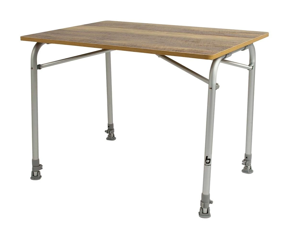 Een lichtgewicht maar zeer stabiele campingtafel. De tafel heeft een glasfiber top welke hittebestendig en watervast is. Ook heeft de tafeltop een kunststof rand. Het frame is van aluminium en de campingtafel is voorzien van voetjes met stabilisatoren zodat de tafel op iedere ondergrond stevig staat. Tevens zijn de poten in hoogte te verstellen (traploos).