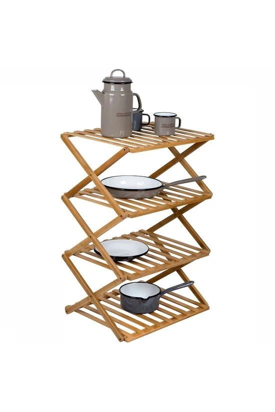 De Bo-Camp Urban Fitzroy Bamboe is een stevige en compacte legkast. Gemaakt van bamboe en door de scharnieren snel en eenvoudig in te klappen. Beschikt over vier legplanken voor het opbergen van spullen. Kan worden gebruikt als schoenenrek of voor het opbergen van andere artikelen. Ideaal voor in de tent, maar ook voor thuis, bijvoorbeeld in de badkamer of op het balkon.