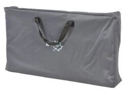 Het frame van de stoel is gemaakt van staal met daarop een stevige polyester zitting. Ook de armleggers zijn bekleed voor extra comfort. De stoel heeft een maximaal draagvermogen van 120 kg en wordt geleverd inclusief een handige draagtas.