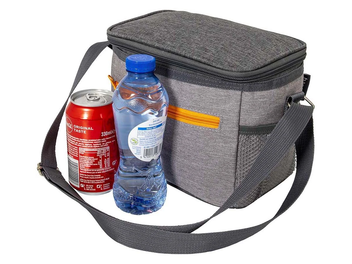 Een zeer handige koeltas. Uitstekende isolerende werking door het EVA isolatie materiaal. De koeltas is voorzien van een handige draagriem, een voorvakje met rits en 2 mesh zijvakjes.