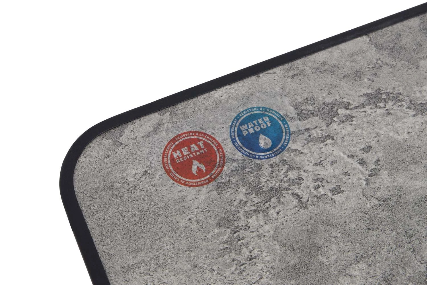 Een stijlvolle kookeiland met windscherm uit de Industrial collectie. Voorzien van een extra stevige donker blauwe 600 denier polyester hoes met daarin 2 handige legplanken. Het oplegblad heeft een beton look en is hittebestendig, watervast, voorzien van een windscherm en geschikt voor een 4-pits gaskomfoor. De verstelbare poten zijn afzonderlijk af te stellen zodat de legkast op iedere ondergrond stabiel staat. Wordt geleverd in een draagtas.
