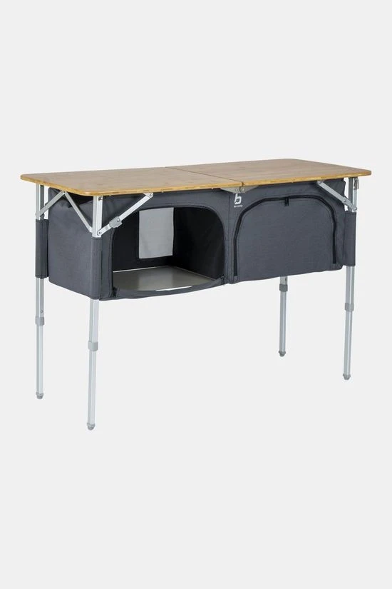 - Daarnaast is de kookmeubel voorzien van een deelbaar bamboe oplegblad waardoor het zeer compact opvouwbaar is.