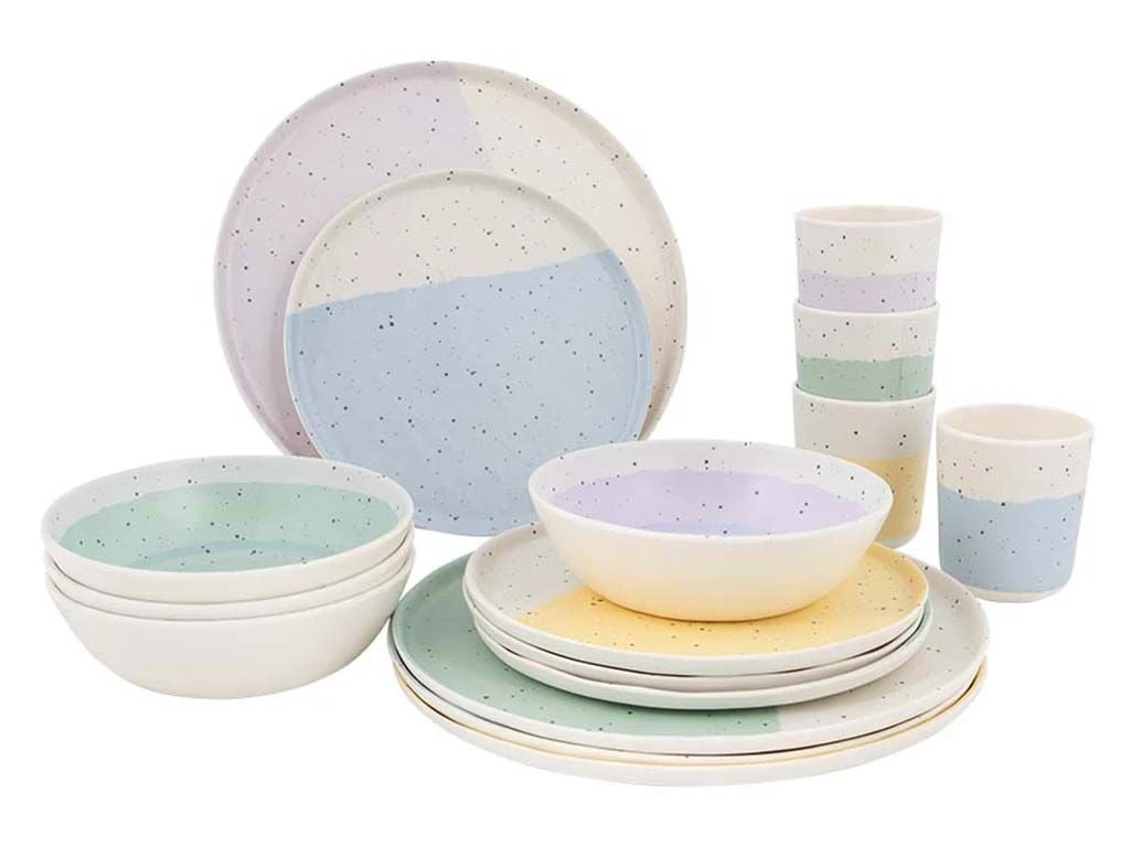 Breng stijl en kleur naar de tafel met deze vrolijke en stijlvolle melamine tableware set uit de pastel collectie.