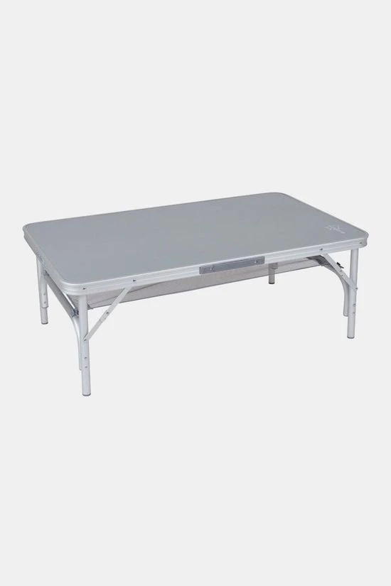 De Bo-Camp Tafel Premium 100×60 cm is een uiterst stabiele campingtafel met een watervast en hittebestendig tafelblad. Deze tafel heeft afneembare poten en is hierdoor eenvoudig en compact in te klappen (100 x 60 x 3,5 cm). De tafel is gemaakt van lichtgewicht aluminium. De poten zijn in hoogte verstelbaar (36-70 cm) en hebben stelschroeven voor de fijnafstelling. Onder het tafelblad is een net bevestigd om spullen op te bergen.