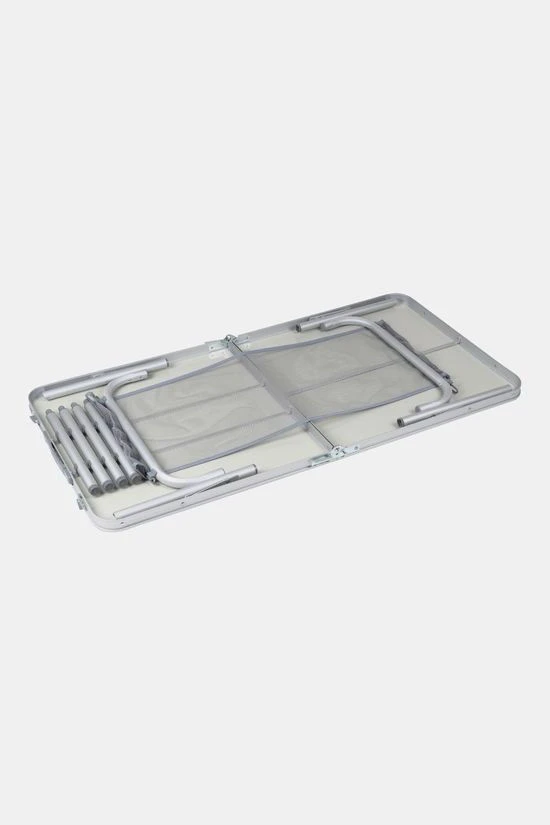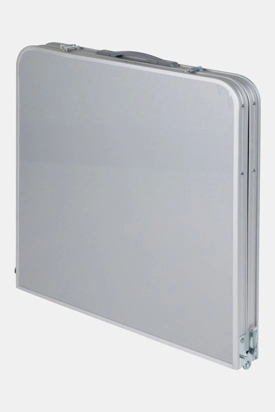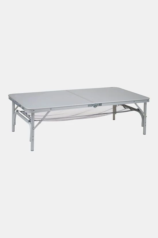 De Bo-Camp Tafel Koffermodel 90×60 cm is een koffermodel campingtafel met een watervast en hittebestendig tafelblad. Deze zeer stabiele tafel heeft verstelbare poten (36-70 cm), stelschroeven voor extra fijnstelling en een deelbaar tafelblad. Hierdoor is de tafel eenvoudig op te vouwen tot koffermodel (60 x 60 x 7 cm). De tafel is gemaakt van lichtgewicht aluminium met een watervast en hittebestendig tafelblad. Onder het tafelblad is een net bevestigd om spullen op te bergen.