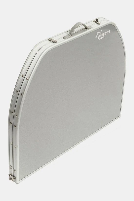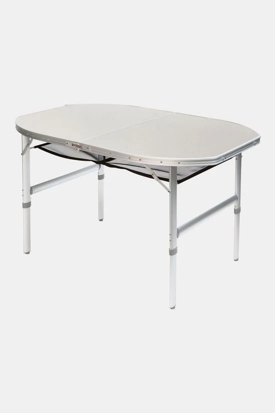 De Bo-Camp Tafel Premium Ovaal Koffermodel 120×80 cm is een zeer stabiele ovalen campingtafel met een watervast en hittebestendig tafelblad. Deze tafel heeft verstelbare poten, stelschroeven voor extra fijnstelling en een deelbaar tafelblad. Hierdoor is de tafel eenvoudig op te vouwen tot koffermodel (80 x 60 x 7 cm). Het is gemaakt van lichtgewicht aluminium met een watervast en hittebestendig tafelblad. Onder het tafelblad is een net bevestigd om spullen op te bergen.