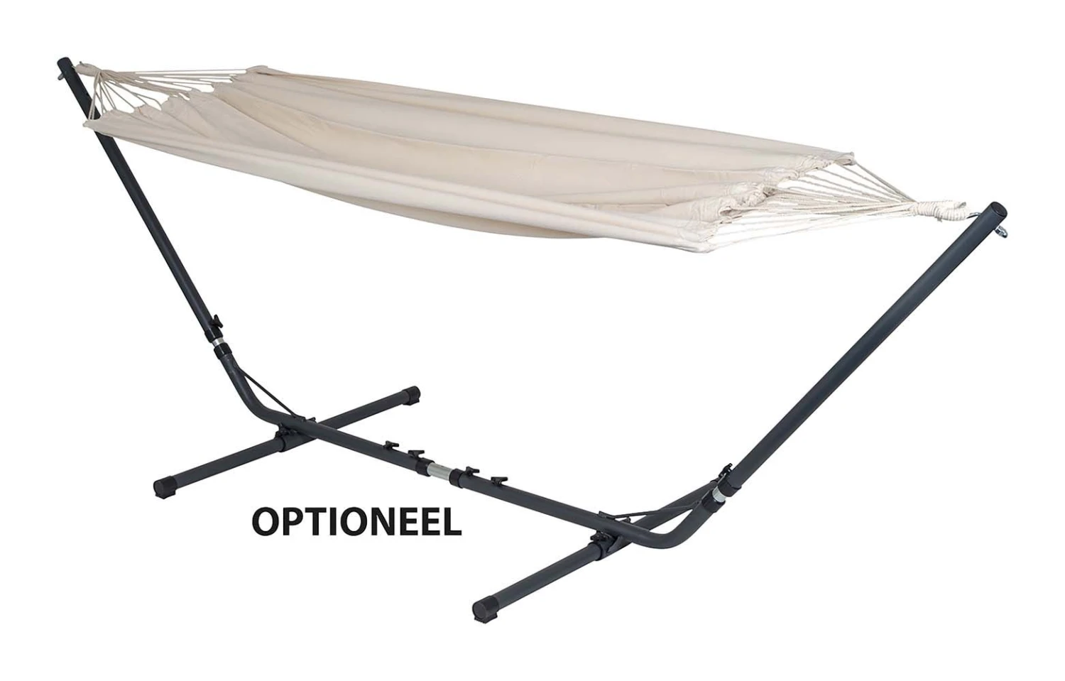 Een stijlvolle en stevige hangmat. Haalt het échte vakantiegevoel naar boven! Gemaakt van stevig 320gr/m² katoen/polyester. De hangmat heeft geen spreidstok waardoor de stof zich volledig naar het lichaam vormt en minder snel kantelt, wat zorgt voor maximaal comfort. Maximaal draagvermogen: 150 kilogram., Een stijlvolle en stevige hangmat. Haalt het échte vakantiegevoel naar boven! Gemaakt van stevig 320gr/m² katoen/polyester. De hangmat heeft geen spreidstok waardoor de stof zich volledig naar het lichaam vormt en minder snel kantelt, wat zorgt voor maximaal comfort. Maximaal draagvermogen: 150 kilogram.