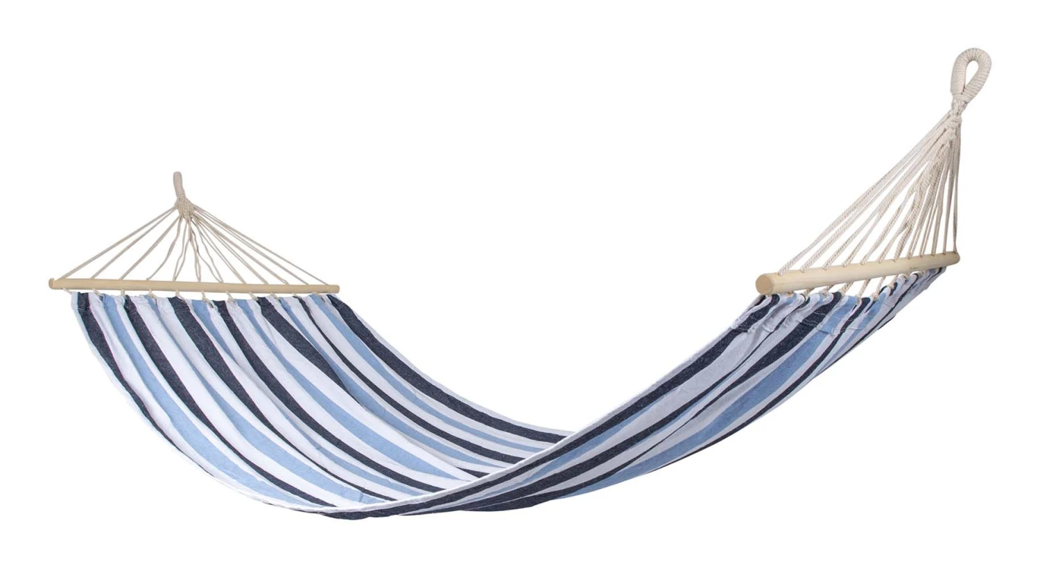 Een vrolijke en stevige hangmat. Heerlijk ontspannen op vakantie, in de tuin of op het balkon. Gemaakt van stevig 320gr/m² katoen/polyester. De hangmat beschikt over een spreidstok van 100 cm aan de uiteinden waardoor de stof volledig open blijft.