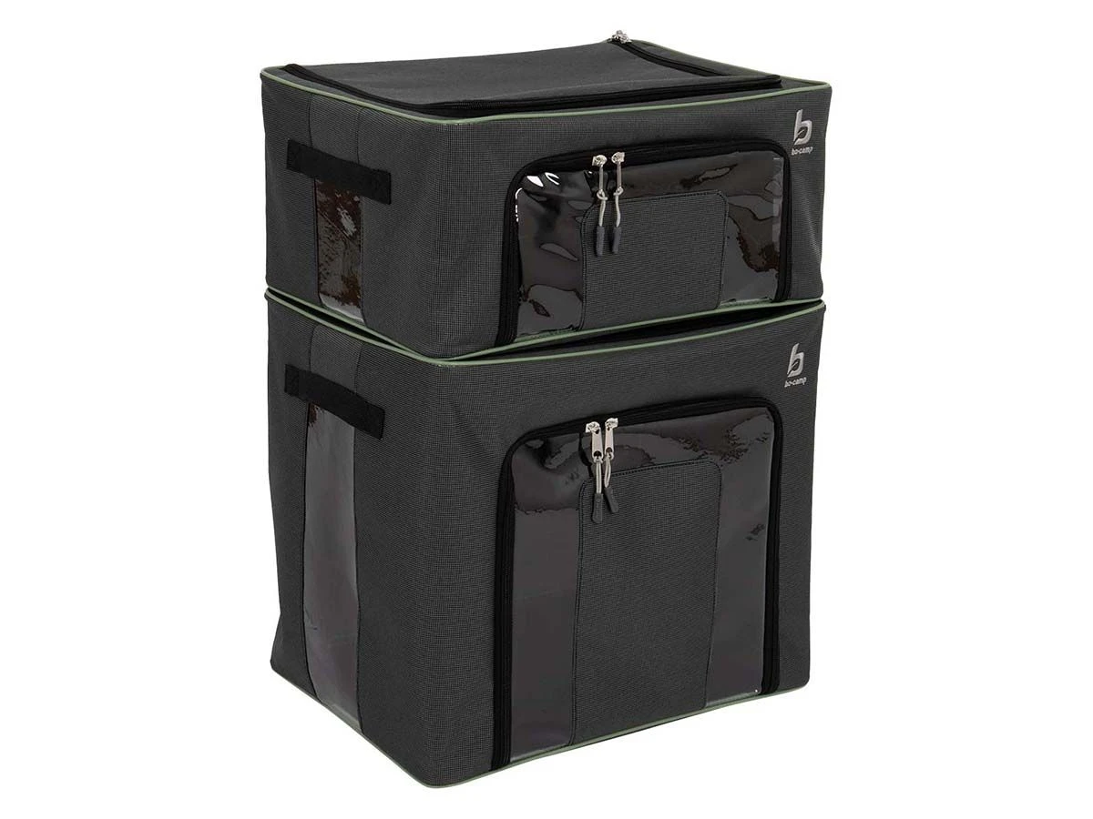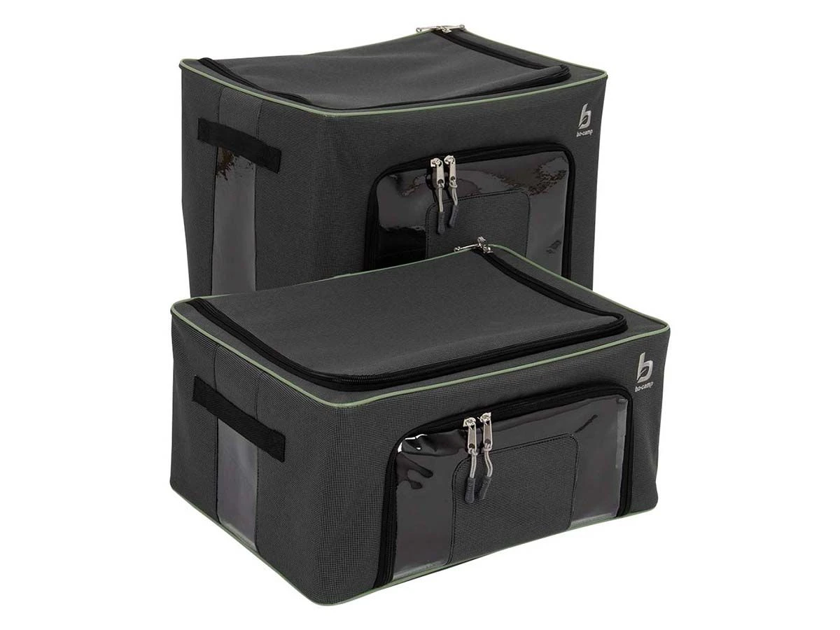 Houd je spullen georganiseerd met deze set van stabiele opbergboxen, ideaal voor kamperen, reizen of thuisgebruik.