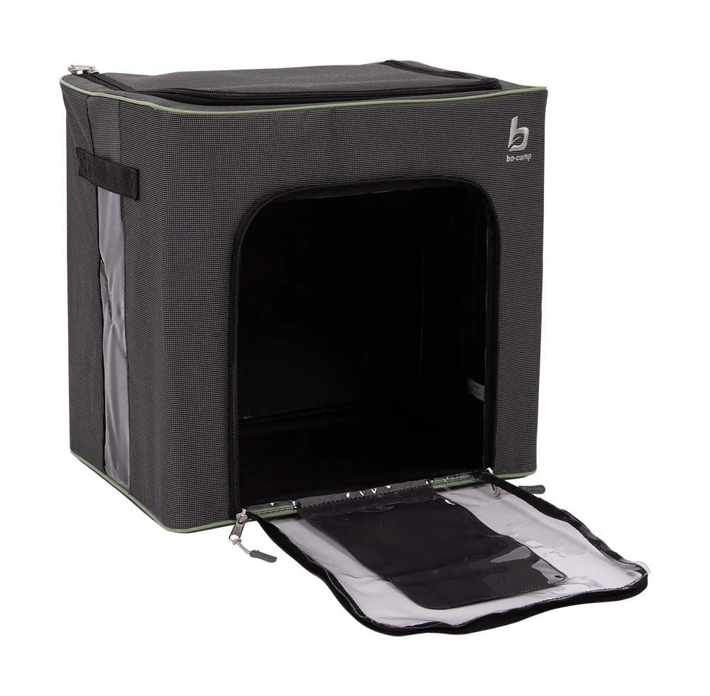De 600D Polyester bekleding is bestand tegen vocht, vuil en insecten, terwijl de twee kijkvensters aan de voorzijde je direct laten zien wat erin zit.