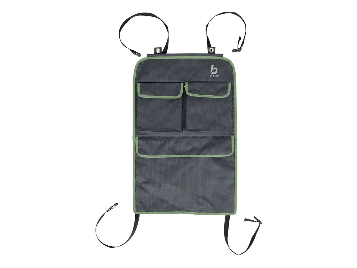Multifunctionele organizer met drie vakken voor in de tent, caravan of aan de autostoel. Voorzien van een pees voor bevestiging aan de caravanrail, klittenband voor bevestiging om een tentstok, lusjes onderaan voor fixatie, ogen voor ophanging aan haken en straps met snelsluitingen voor bevestiging aan een autostoel. Materiaal: stevig 600 denier Oxford polyester. Afmetingen: lengte 66cm en breedte 43cm. Kleur: grijs en blauw.