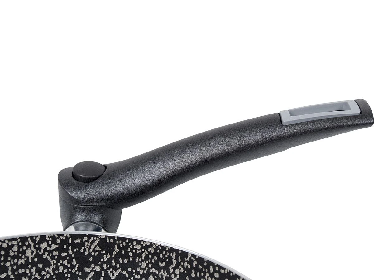 De Bo-Camp koekenpan Turn Ø 24 cm beschikt over een wegklapbare handgreep. Hierdoor is de pan ruimtebesparend en makkelijk mee te nemen. Vaatwasmachine bestendig en geschikt voor de warmtebronnen gas, keramisch en elektrisch.