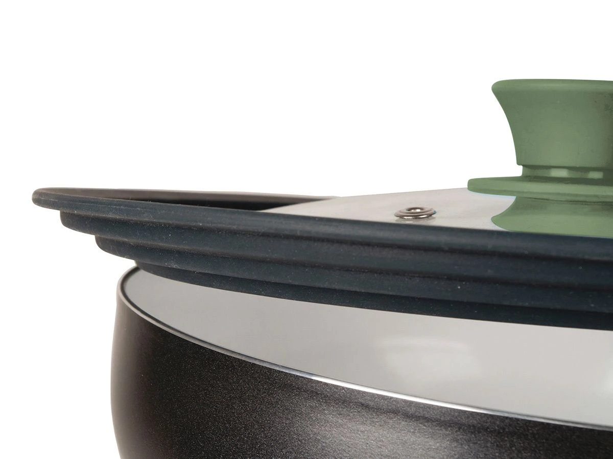 De Bo-Camp universele deksel is gemaakt van glas en voorzien van een siliconen rand en knop. De deksel is passend voor pannen met een diameter van 24, 26 of 28 cm.