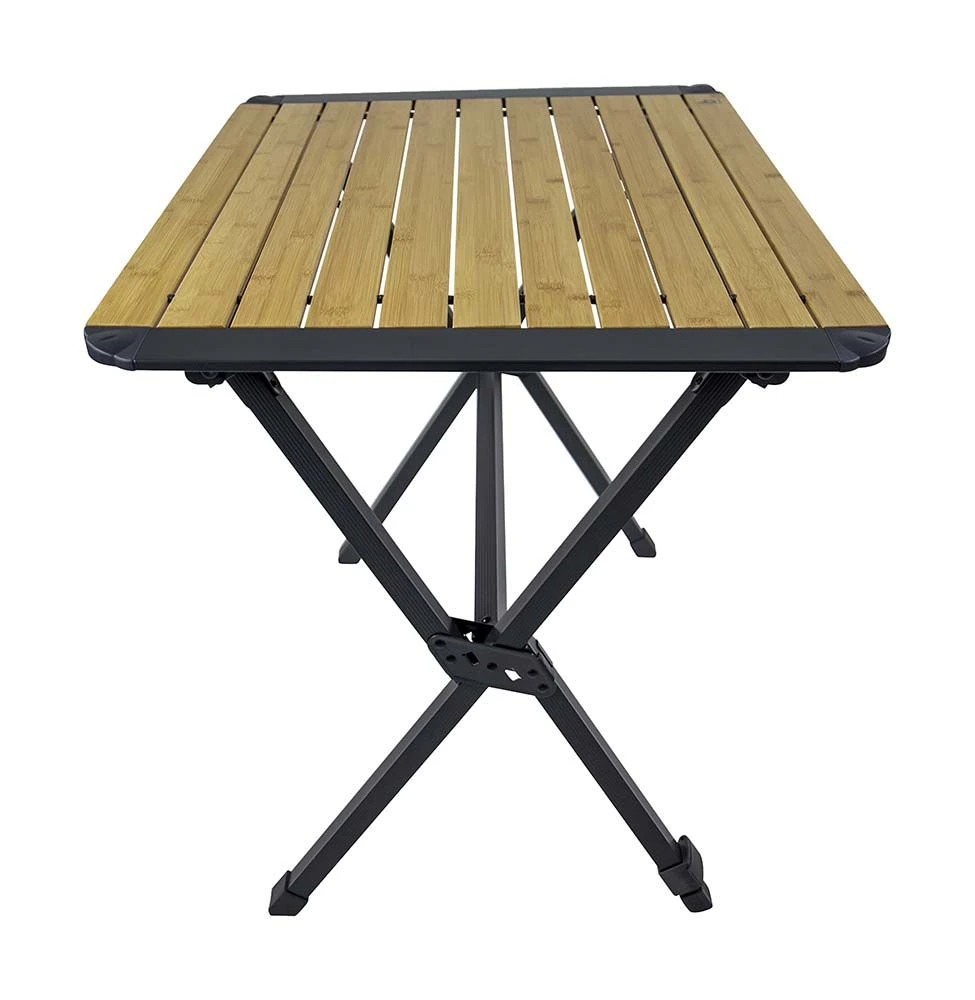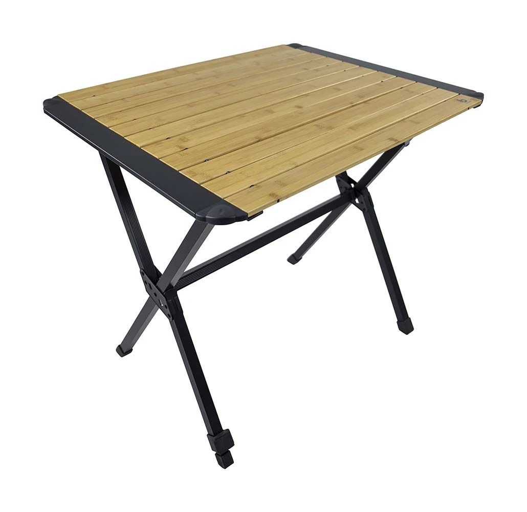 Een trendy tafel uit de Urban Outdoor collectie. Zeer stabiel en uitgerust met een zeer stijlvol bamboe en watervast tafelblad. Het opzetten vergt nauwelijks moeite dankzij het uitklapbare tafelframe dat uit één stuk bestaat. Als het frame volledig is uitgeklapt, kan het lamellen blad eenvoudig worden bevestigd. Het inklappen van de tafel gaat nog sneller: verwijder het lamellenblad, vouw het frame in en rol dit met de lamellen op tot een klein pakket. Inclusief stevige draagtas.