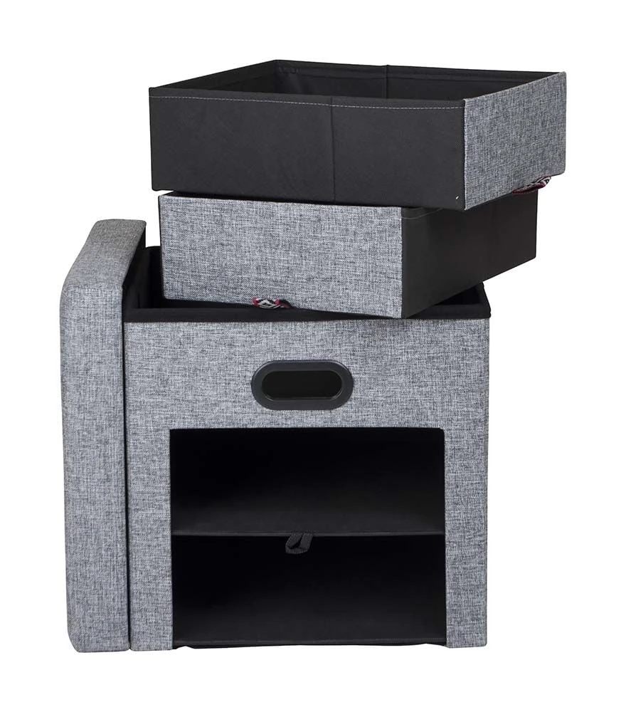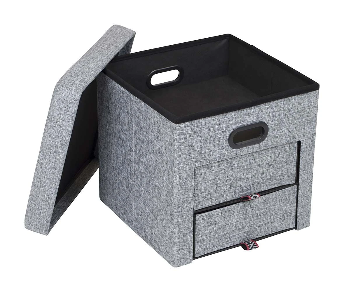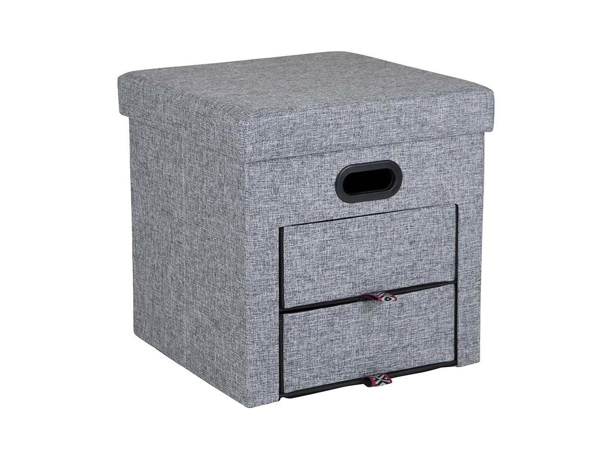 Een trendy ottoman poef, voorzien van 2 lades. Geschikt om spullen in op te bergen maar biedt ook een poef als zitplek. Gemaakt van Oxford Polyester met een linnen look. Maximum capaciteit: 100kg.