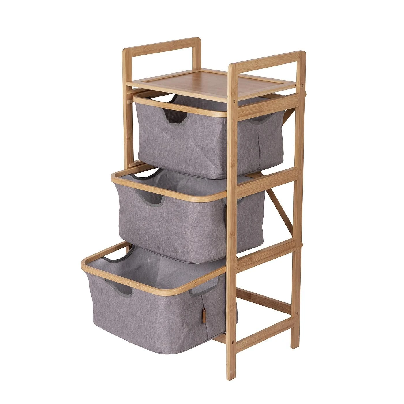 Een modern vormgegeven campingkast met 3 uitschuifbare manden. De kast heeft een frame van bamboe en is voorzien van zeer mooie afgewerkte details. Ideaal voor in de tent, thuis op de badkamer of op het balkon.